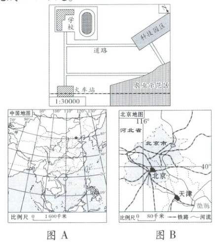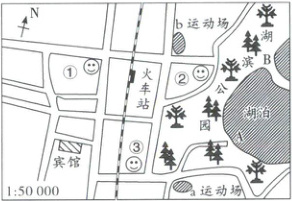 (3)三位同学相约在湖泊西南方向的运动场附近会合,这个运动场是a运动场还是b运动场?(2分)