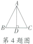 4. 如图,在等腰三角形$ABC$中,$AB = AC$,$AD$是边$BC$上的高,则下列结论不正确的是(