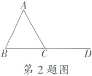 2.A【解析】由条件可知∠ACD = ∠A + ∠B,即∠B = ∠ACD - ∠A = 130° - 50° = 80°.故选A.
