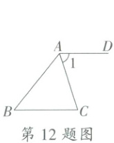 12. 如图,在$\triangle ABC$中,$∠BAC=60^ { \circ },∠B=50^ { \circ },AD// BC$,则$∠1$的度数为
