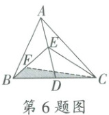 6. 如图,在$\bigtriangleup ABC$ 中$,D、E$ 分别是$BC、AD$ 的中点,点$F$ 在$BE$ 上,且$EF = 2BF$,若$S _ { \bigtriangleup BCF } = 2 c m ^ { 2 }$,则$S _ { \bigtriangleup ABC }$ 为(