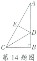 14. 如图,在$Rt \bigtriangleup ABC$ 中$,\angle B = 9 0 ^ { \circ }$,$AC$ 的垂直平分线$DE$ 分别交$AB,AC$ 于点$D$ 和$E$,$CD$ 平分$\angle ACB$,$AD = 5$,$BD = $