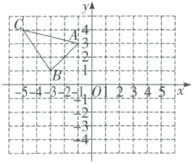 18. ( 9 分) 如图,$\bigtriangleup ABC$ 的三个顶点的坐标分别为$A( - 1 , 3 )$,$B( - 3 , 1 )$,$C( - 5 , 4 )$.