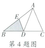 4.(3分)如图,已知$\triangle ABC$中,点$D$、$E$分别是边$BC$、$AB$的中点。若$\triangle ABC$的面积等于8,则$\triangle BDE$的面积等于(
