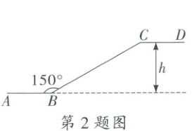 2.(3分)如图是某商场一楼与二楼之间的手扶电梯示意图。其中$AB$,$CD$分别表示一楼、二楼地面的水平线,$\angle ABC = 150°$,$BC$的长是8 m,则乘电梯从点$B$到点$C$上升的高度$h$是(