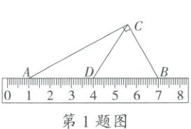 1.(3分)如图,将直角三角尺放置在刻度尺上,斜边上三个点$A$、$D$、$B$对应的刻度分别为1、4、7(单位:cm),则$CD$的长度为(