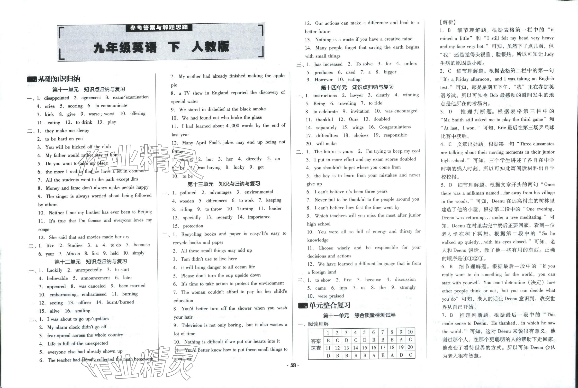 注:目前有些书本章节名称可能整理的还不是很完善,但都是按照顺序排列的,请同学们按照顺序仔细查找。练习册 2026年单元加期末复习与测试九年级英语下册人教版 答案主要是用来给同学们做完题方便对答案用的,请勿直接抄袭。