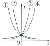 1. 如图,①②③④中不属于函数$y = 2^{x},y = 3^{x},y = \left( \frac{1}{2} \right)^{x}$的一个是