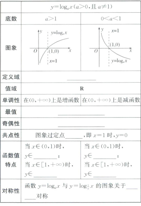 1. 对数函数$y = \log_{a}x (a>0,且a \neq 1)$的图象和性质