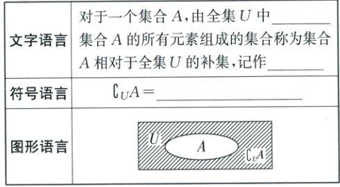 2. 不属于$\complement_U A$ $\{x|x\in U, 且x\notin A\}$