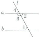 6. 如图,直线$ a $与$ b $被直线$ l $所截,分别得到了$ \angle 1 $,$ \angle 2 $,$ \angle 3 $和$ \angle 4 $.