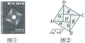 (源于教材第39页)如图①是在北京召开的第24届国际数学家大会的会标,会标是根据中国古代数学家赵爽的弦图设计的.将其抽象成如图②的形式.设直角三角形的两条直角边的长为$a,b$ $(a \neq b)$,那么正方形的边长为$\sqrt{a^{2} + b^{2}}$.