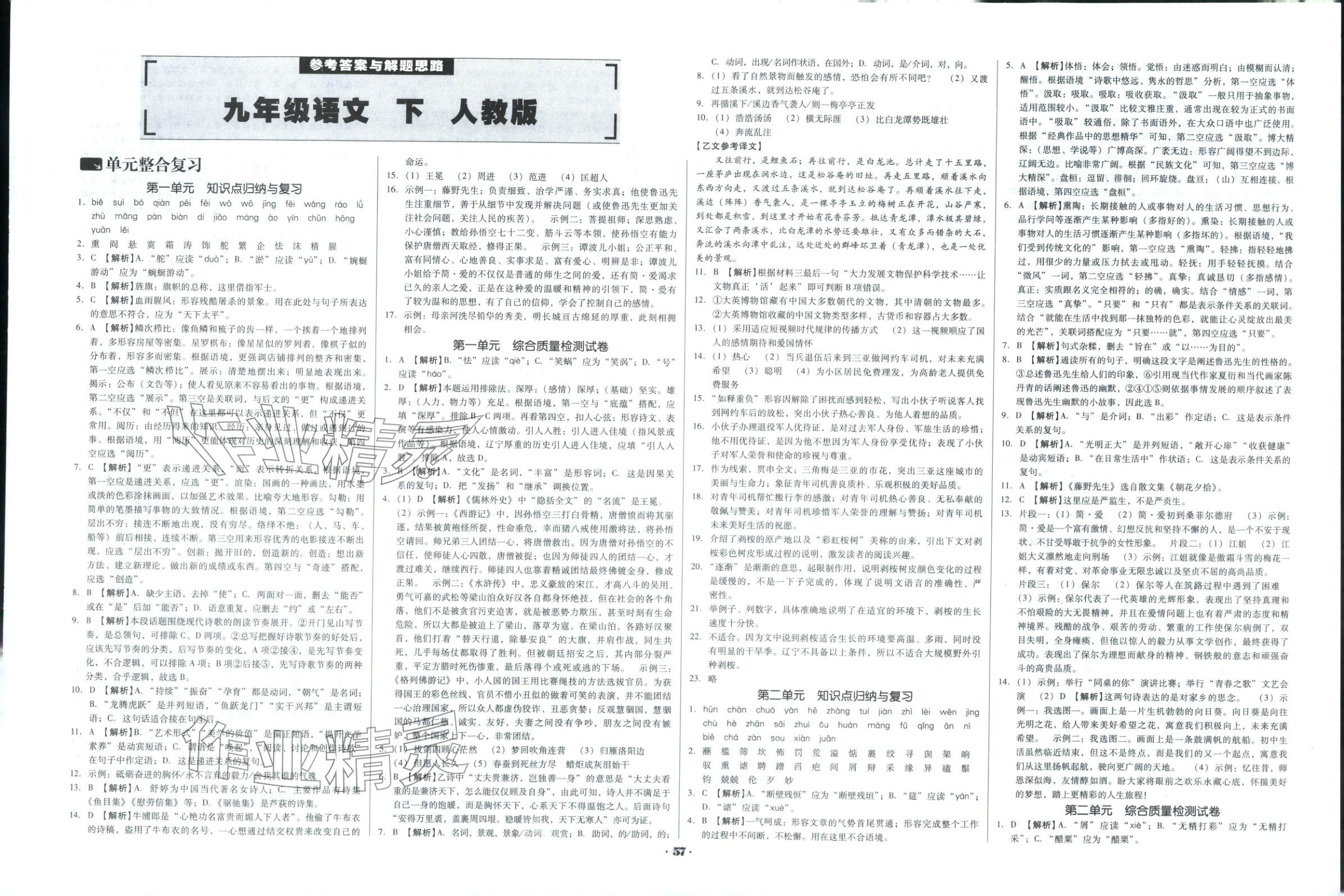 注:目前有些书本章节名称可能整理的还不是很完善,但都是按照顺序排列的,请同学们按照顺序仔细查找。练习册2026年单元加期末复习与测试九年级语文下册人教版答案主要是用来给同学们做完题方便对答案用的,请勿直接抄袭。