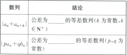 | $\{ a_{n} + a_{n + k}\}$ | 公差为的等差数列($k$为常数,$k \in \mathbf{N}^{*}$) |