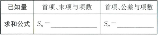 $\frac{n(a_1 + a_n)}{2}$,$na_1 + \frac{n(n - 1)}{2}d$。