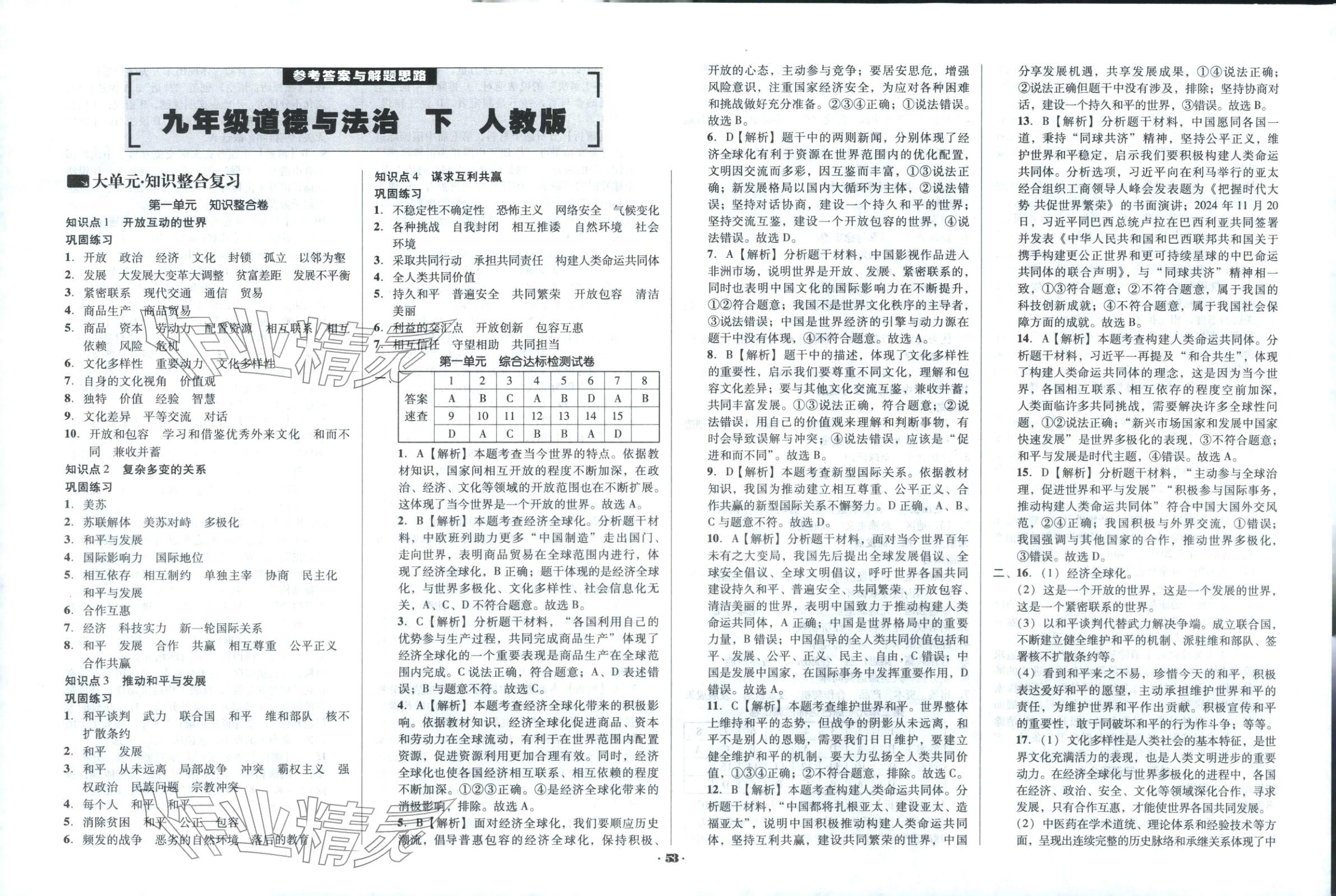 注:目前有些书本章节名称可能整理的还不是很完善,但都是按照顺序排列的,请同学们按照顺序仔细查找。练习册 2026年单元加期末复习与测试九年级道德与法治下册人教版 答案主要是用来给同学们做完题方便对答案用的,请勿直接抄袭。