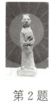 2.C 解析:陶俑属于陶器,制造陶俑的主要原料是黏土,A 正确;陶俑属于陶器,陶器的主要成分是硅酸盐,B正确; 陶俑呈红色是因为含$\mathrm{Fe_2O_3}$,C错误;陶俑是以黏土为主要 原料,经高温烧结而成的,过程中发生了化学变化,D正确。
