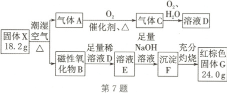 7. (2025·浙江温州检测)某固体化合物 X 由两种元素组成,摩尔质量为 364 g/mol,小高为了探究其组成,进行了如图实验: