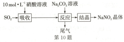 10. (2025·黑龙江大庆检测)某生产单位设计以 SO₂、硝酸、纯碱为原料制备亚硝酸钠(NaNO₂),其工艺流程如图:
