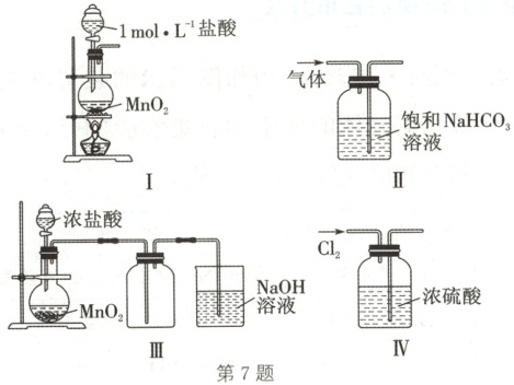 (2)制取干燥、纯净的Cl₂还需饱和食盐水除去HCl气体、浓硫酸干燥Cl₂、NaOH溶液除去多余的Cl₂。