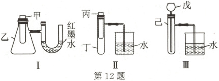 12. 为了探究化学能与热能的转化,某实验小组设计了如图所示的三套实验装置: