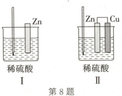 (1)I主要将化学能转化为热能,而II主要将化学能转化为电能,则I中温度计的示数高于II,故A正确;由A中分析可知,I和II中温度计的示数不相等,但均高于室温,故B错误;II中铜为正极,铜棒的表面有气泡产生,故C错误;利用原电池反应可以使金属与酸的反应速率增大,故II中产生气体的速率比I大,故D错误。