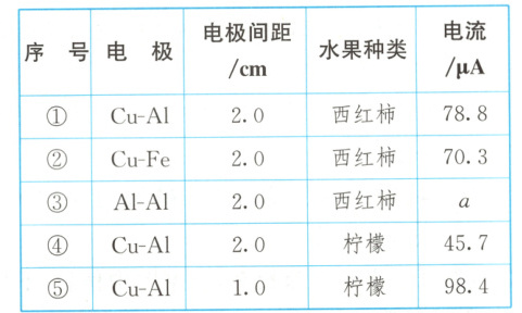 9.(选做题)(2024·浙江丽水期末)某实验小组自制如图所示的水果电池,探究影响电池效果的因素,实验记录如表。下列说法正确的是(