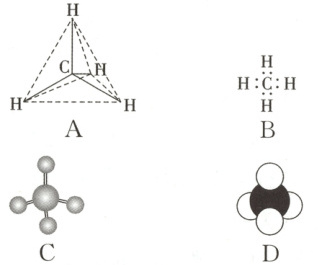 1. 模型认知 下列化学用语能表示甲烷的分子构成,但不能反映其分子空间结构的是(