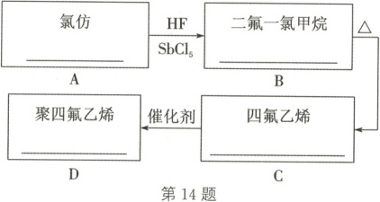 14. 聚四氟乙烯的耐热性和化学稳定性都超过其他塑料,甚至在“王水”中也不发生变化,故号称“塑料王”,在工业上有着广泛的用途。