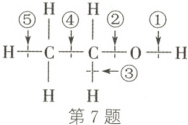 7.C 解析:乙醇和钠反应,是羟基中的O—H断裂,即①断裂,A正确;乙醇催化氧化生成乙醛时,断裂①和③,B正确、C错误;乙醇在空气中完全燃烧,断裂①②③④⑤,D正确。