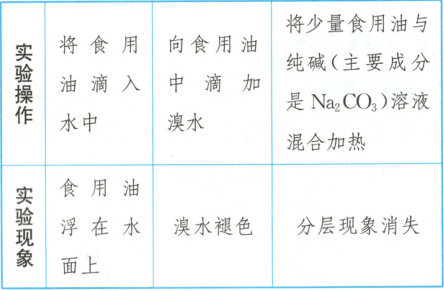 11. D 解析: 食用油浮在水面上,说明食用油的密度比水的小,A项正确;滴加溴水,溴水褪色,说明食用油中含有碳碳不饱和键,B项正确;食用油与纯碱溶液混合加热,分层现象消失,说明食用油在碱性条件下水解生成可溶于水的物质,C项正确;食用油是一种油脂,属于酯类,不属于有机酸,D项错误。