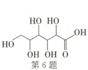 6.C 解析:R中含羟基、羧基2种官能团,A正确;R中含羧基、羟基,能与乙醇或乙酸发生酯化反应,B正确;R中只有羧基能与氢氧化钠反应,1molR能与1molNaOH反应,C错误;R分子中含4个手性碳原子:
