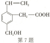7.B 解析:该有机物中含有碳碳双键、羧基和羟基,共3种官能团,A错误。该有机物中含有羧基和羟基,能发生取代反应;含有碳碳双键,能发生加成反应;含有碳碳双键和—CH₂OH,能发生氧化反应(且该有机物还有可燃性),所以该有机物能发生取代反应、加成反应和氧化反应,B正确。羟基、羧基均能和钠反应生成氢气,则1mol该有机物能与2mol钠反应生成1molH₂,C错误。该有机物中含有碳碳双键,能和溴的四氯化碳溶液发生加成反应而使其褪色;含有碳碳双键和—CH₂OH,能被酸性高锰酸钾溶液氧化而使其褪色,两者反应原理不同,D错误。