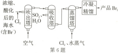 )A.海水中$ Br^-$经氧化、吹出、吸收后,可实现溴的富集