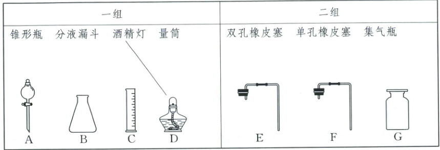 (2)制取二氧化碳用大理石(或石灰石)与稀盐酸反应,是固液不加热型反应,要便于添加稀盐酸,发生装置用到的仪器有分液漏斗(A)、锥形瓶(B)、双孔橡皮塞(E)及导管;二氧化碳的密度比空气大、能溶于水,常用向上排空气法收集;用G装置收集二氧化碳,验满方法是将燃着的木条放在集气瓶瓶口,若木条熄灭,说明二氧化碳已集满。