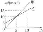 如图所示是甲、乙两个质点的$ v-t $图像。