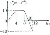 $10~12\ s$内质点的加速度$a_3 = \frac{-10 - 0}{12 - 10}\ m/s^2 = -5\ m/s^2$。