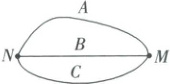 [典例1] $ A $、$ B $、$ C $三个质点同时从$ N $点出发,同时到达$ M $点,三个质点的运动轨迹如图所示。下列说法正确的是(