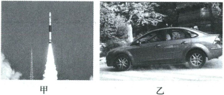 [典例4] (多选)如图甲所示,火箭发射时,速度能在$ 10 \, s $内由$ 0 $增加到$ 100 \, m/s $;如图乙所示,汽车以$ 108 \, km/h $的速度行驶,急刹车时能在$ 2.5 \, s $内停下来。下列说法中正确的是(