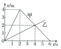 B.第$ 4 \, s $末时,甲、乙两物体相遇