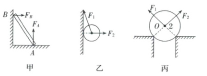 (b)球挤压墙壁且拉紧细线,所以墙对球的弹力与墙面垂直;细线对球的弹力沿细线向上,如图乙所示。