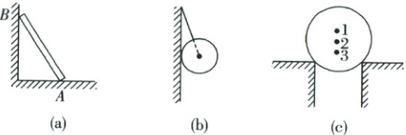 (a)杆靠在墙上。