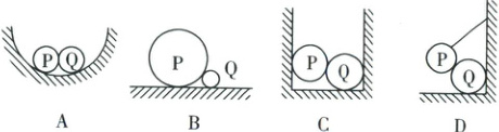 [例4] 下列各图中所有接触面都是光滑的,$P$、$Q$两球之间不存在弹力的是 (