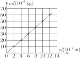 图像斜率为$\frac{k}{g} = \frac{60 × 10^{-3}}{12 × 10^{-2}} kg/m = 0.5 kg/m$