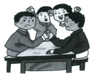 [例2] “掰手腕”是中学生课余非常喜爱的一项游戏。如图所示,甲、乙两同学正在进行“掰手腕”游戏,关于他们手之间的力,下列说法正确的是 (