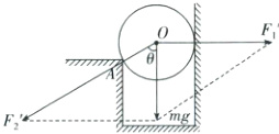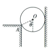 2. 如图所示,一个重为$100\ N$的小球被夹在竖直的墙壁和$A$点之间,已知球心$O$与$A$点的连线与竖直方向成$\theta$角,且$\theta = 60^{\circ}$,所有接触点和面均不计摩擦。试求小球对墙面的压力$F_1$和对$A$点压力$F_2$。