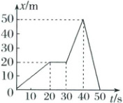 (1)质点在0~20 s时间内和30~40 s时间内离出发点的位移越来越大,离出发点越来越远;质点在20~30 s时间内位移没有变化,故处于静止状态;质点在40~50 s时间内离出发点的位移越来越小,离出发点越来越近。