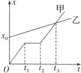 [例 2] (多选) 如图所示为甲、乙在同一直线上运动时的 $x - t$ 图像,以甲的出发点为原点,出发时间为计时的起点,则下列说法中正确的是(