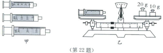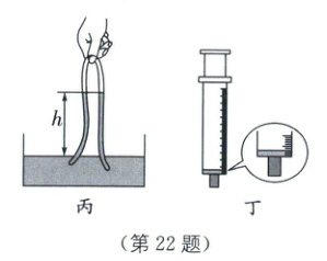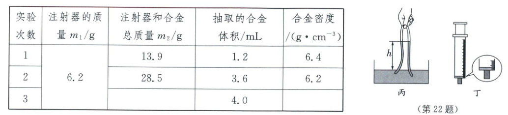 22. (8分)镓铟锡合金常温下处于液态且无毒.物理科创小组的同学们认为可以用它代替易挥发、有毒的水银测量大气压强,他们决定先测量镓铟锡合金的密度,再测量大气压强.