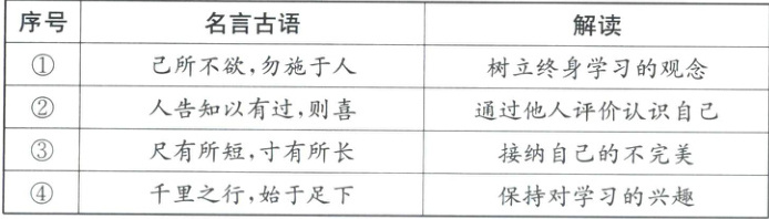 4. 中华优秀传统文化蕴含着丰富的人生智慧,对以下这些名言古语解读正确的是(